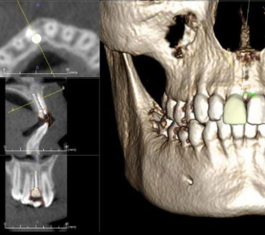 Es un exámen volumetrico muy sofisticado que permite la exploración radiográfica, obteninendo imágenes en 3D de estrucutras orales del paciente. Se utiliza principalmente para la planificación y seguimiento de cirugías y la detección de lesiones asociadas a piezas dentarias.